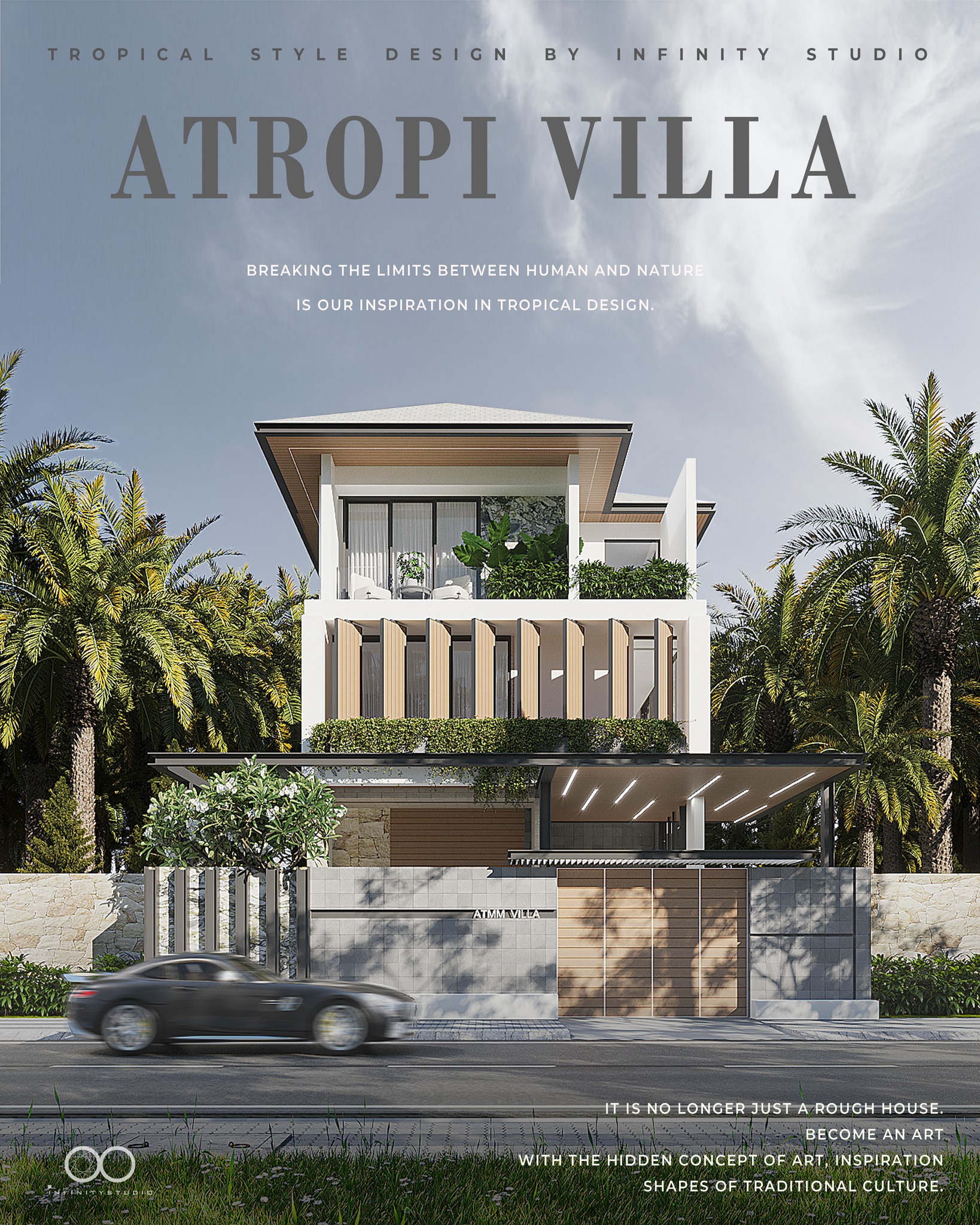 ATROPI Villa mang hơi thở nghỉ dưỡng với không gian xanh, hồ bơi và kiến trúc mở. Dự án thể hiện thế mạnh thiết kế kiến trúc biệt thự cao cấp của Infinity Studio – mọi thiết kế nội thất trong căn biệt thự đều hướng đến sự thư giãn và riêng tư.